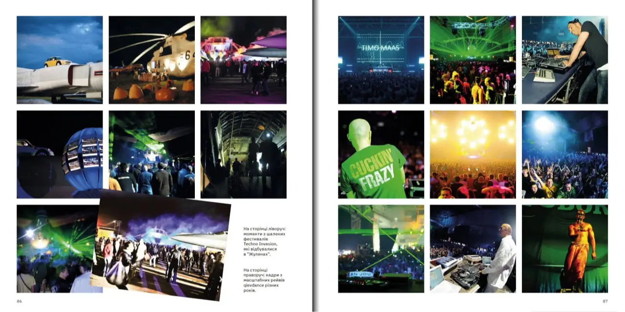 Сторінки книги «Історія українського рейву», присвячені фестивалю Techno Invasion