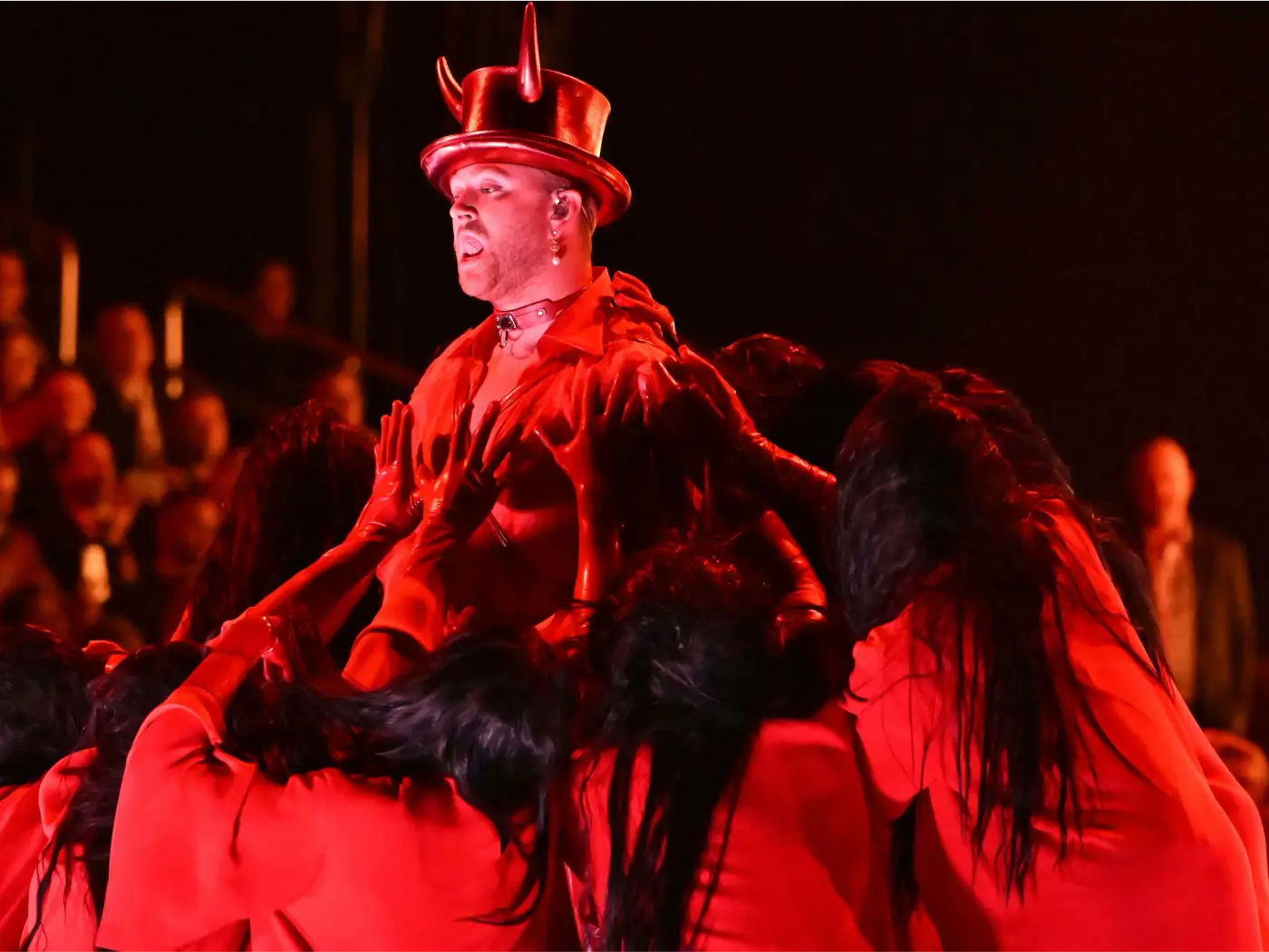 Сем Сміт з’явився в червоному циліндрі з ріжками, а Кім Петрас виступала у величезній клітці, оточеній танцівницями в латексних костюмах. Перформанс викликав настільки великий та неоднозначний резонанс, що його запис видалили з ютубу.