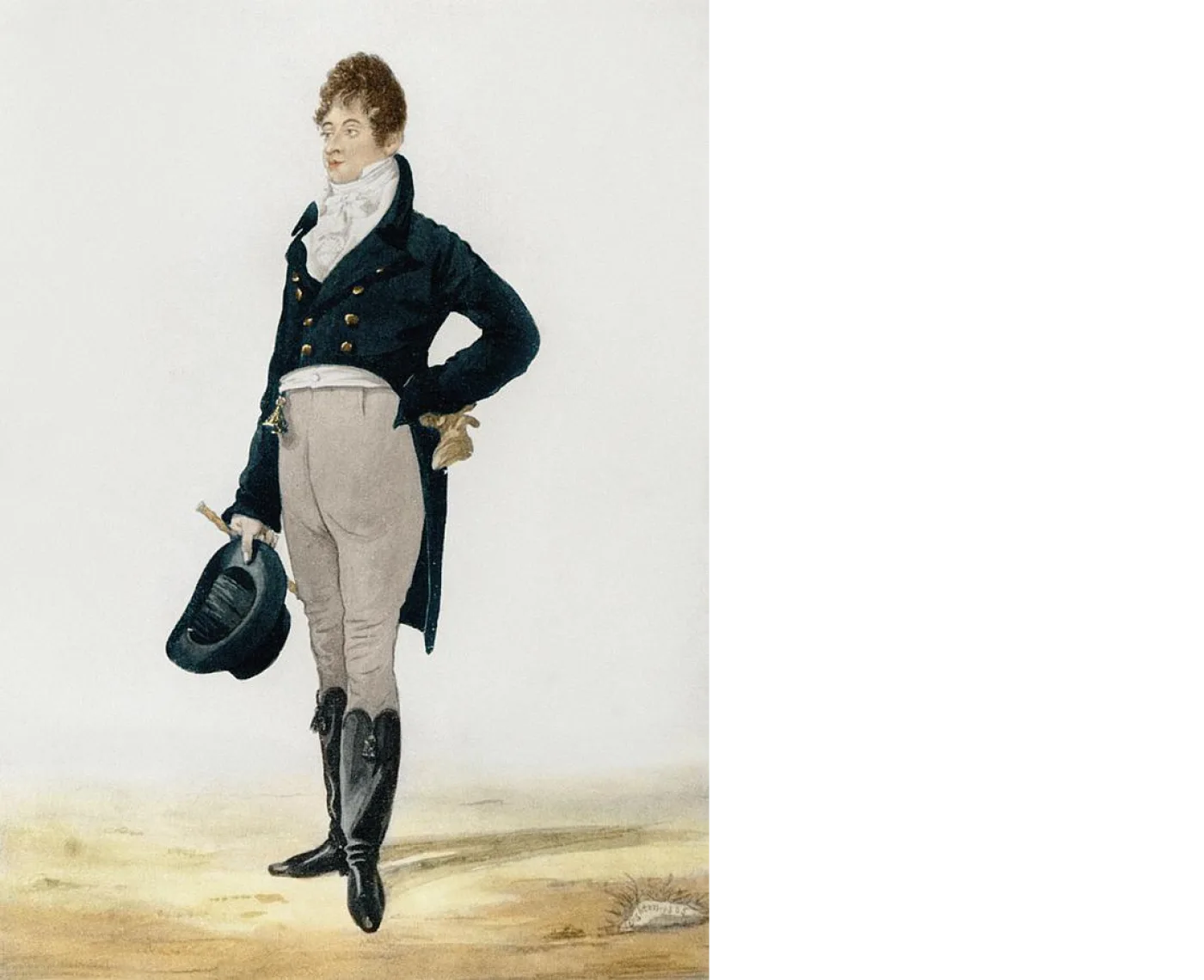 Цю темну й строгу чоловічу уніформу вигадав Бо Браммел — його називають першим денді та модним інфлюенсером. Бо не походив з родини аристократів, але добре дружив з принцом Вельським. Завдяки цим зв’язкам він поширив свої революційні ідеї в моді на всю Британію. А ідеї були такі: позбутися бриджів, панчіх, перук і парч — натомість одягнути білу сорочку, краватку, чорне пальто і довгі штани. Одяг Браммела став прообразом сучасного костюма.