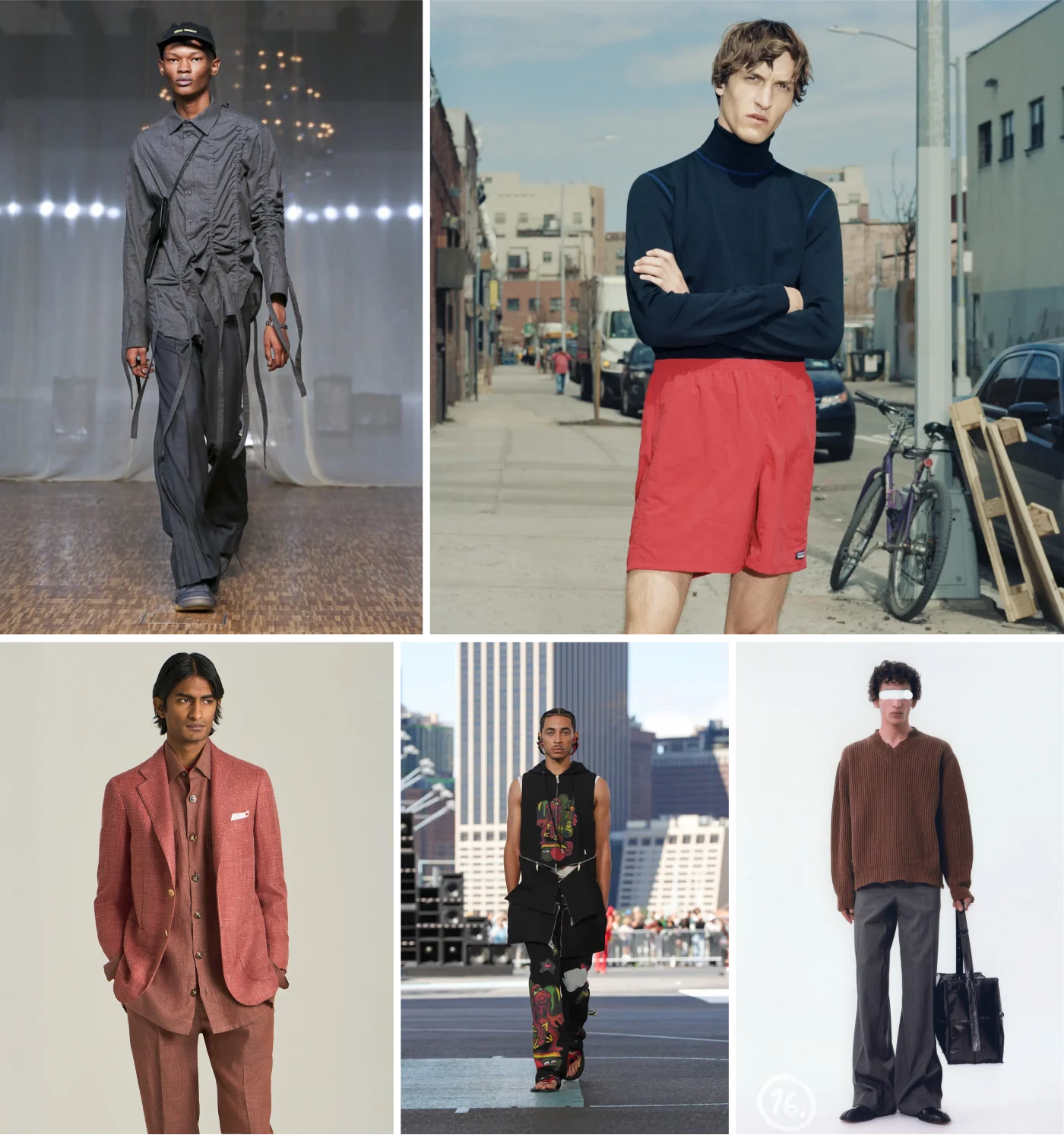 Насправді в чоловічій моді існує все. Прозорі футболки Maison Margiela. Карго-куртки Stone Island з важких тканин. Чоловічі сукні Thom Browne. Сучасні костюми Kiton. Оверсайз-светри Рафа Сімонса. Шовкові блузи Gucci. Футболки з апельсинів Loewe. Екологічний аутдор Patagonia. Бежевий кежуал Aimé Leon Dore. Люксовий стрітвеар Off-White. Повітряні сорочки з льону Jacquemus. Вінтаж і бохо-шик BODE.