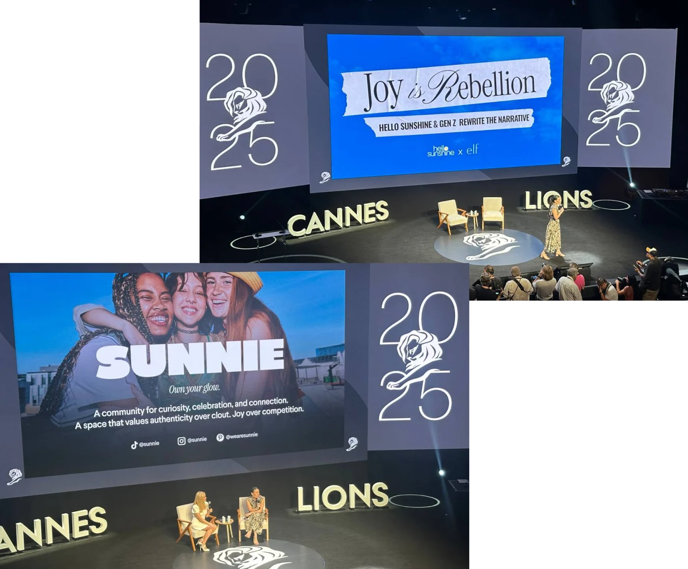Як виявилось, голлівудських акторок можна побачити в Каннах не тільки на кінофестивалі, але й на фестивалі реклами. «Радість — це бунт: Hello Sunshine і покоління Z переписує наратив» — суперкласна подія, де на одній сцені зібралися маркетинг-директорка e.l.f. Cosmetics Корі Марчізотто і неймовірна Різ Візерспун — акторка, продюсерка, авторка книг та сонечко всього Голлівуду.