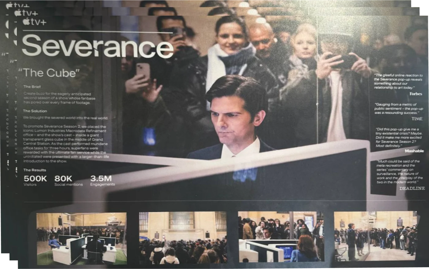 #2. Запуск 2 сезону серіалу «Поділ», в якому особистість людей розділяють на дві частини. І потужний запуск, тому що Apple створили в нью-йоркському метро справжній офіс компанії Lumen, яка фігурує в серіалі. Актори реально сиділи за склом як на роботі.