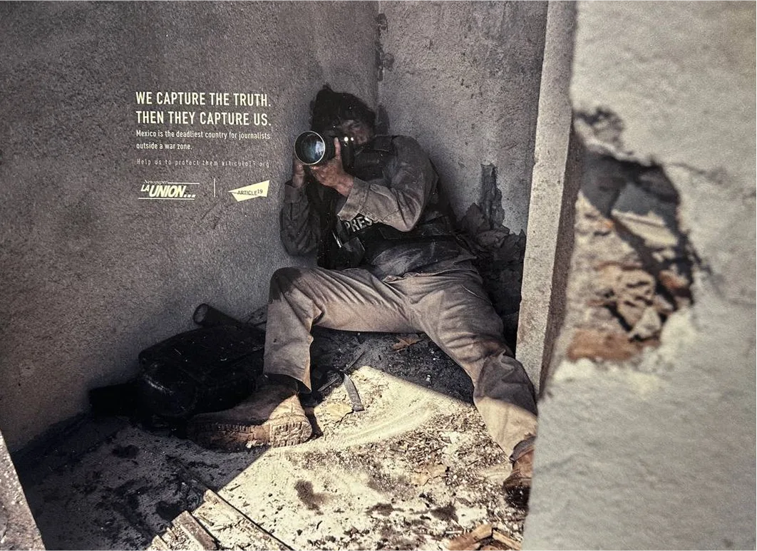 #7. Соціальна кампанія, присвячена журналістам у Мексиці. В країні, де журналістика часто пов’язана зі смертельною небезпекою, ця робота вшановує сміливість репортерів, які, попри загрозу життю, продовжують розслідувати, викривати й доносити правду до мексиканського народу.