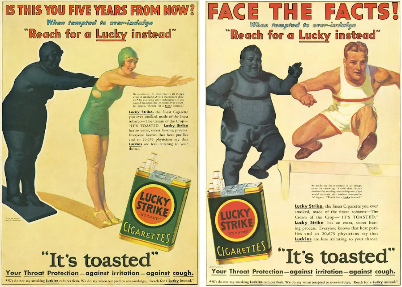 Наступний хід — серія реклам, які закликали жінок замінити солодощі на сигарети, щоб контролювати вагу. Слоган-мотивація: «Тягнись за Lucky замість солодкого».