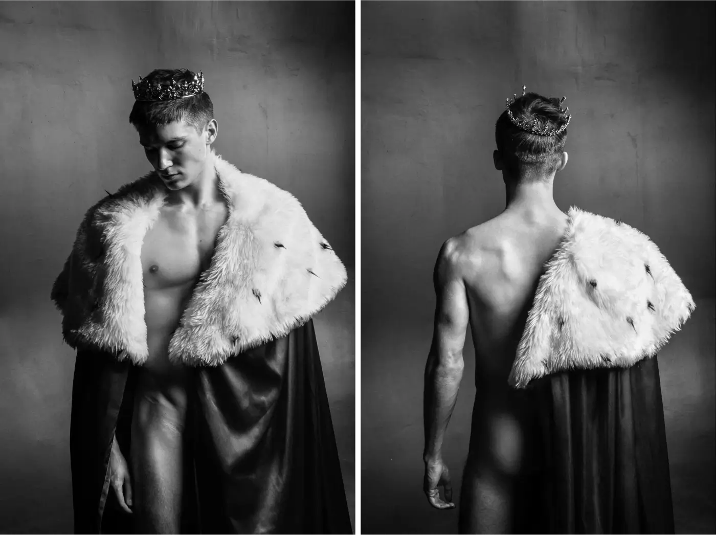 #3. Режисер торкається тебе. Він має пояснювати задачу словами. Виняток — технічні моменти, які актору не вдається виправити самому (петличка з’їхала, одяг зім’явся тощо). Наприклад, ми робили постер для фільму «Мій юний принц» — на фото актор стояв напівоголений, прикритий королівським плащем.