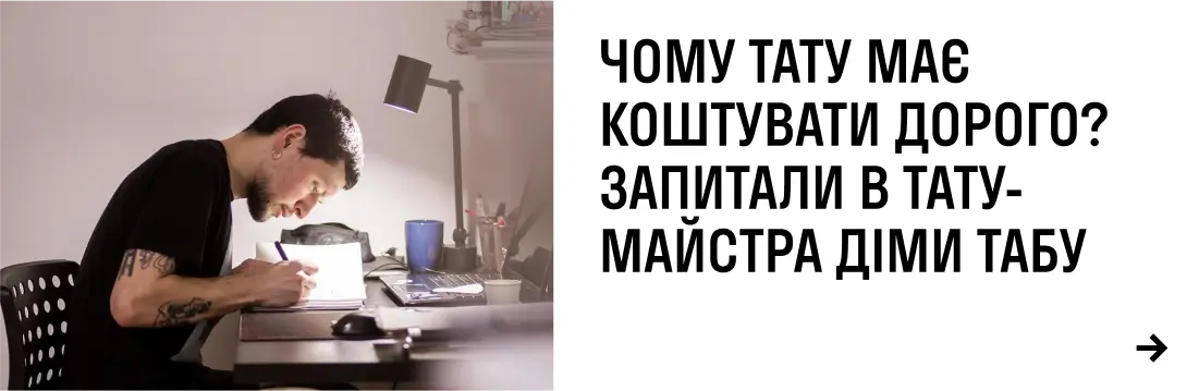 Татуювання не може бути дешевим. Це не пара кросівок на два сезони. Це більше, ніж на все життя. До цього потрібно ставитися з належною відповідальністю. Є люди, які підходять до цього панково. Типу: хочу собі партак хендпоком у когось на кухні. Але якщо ти хочеш класне тату з індивідуальним ескізом — ти йдеш до майстра.