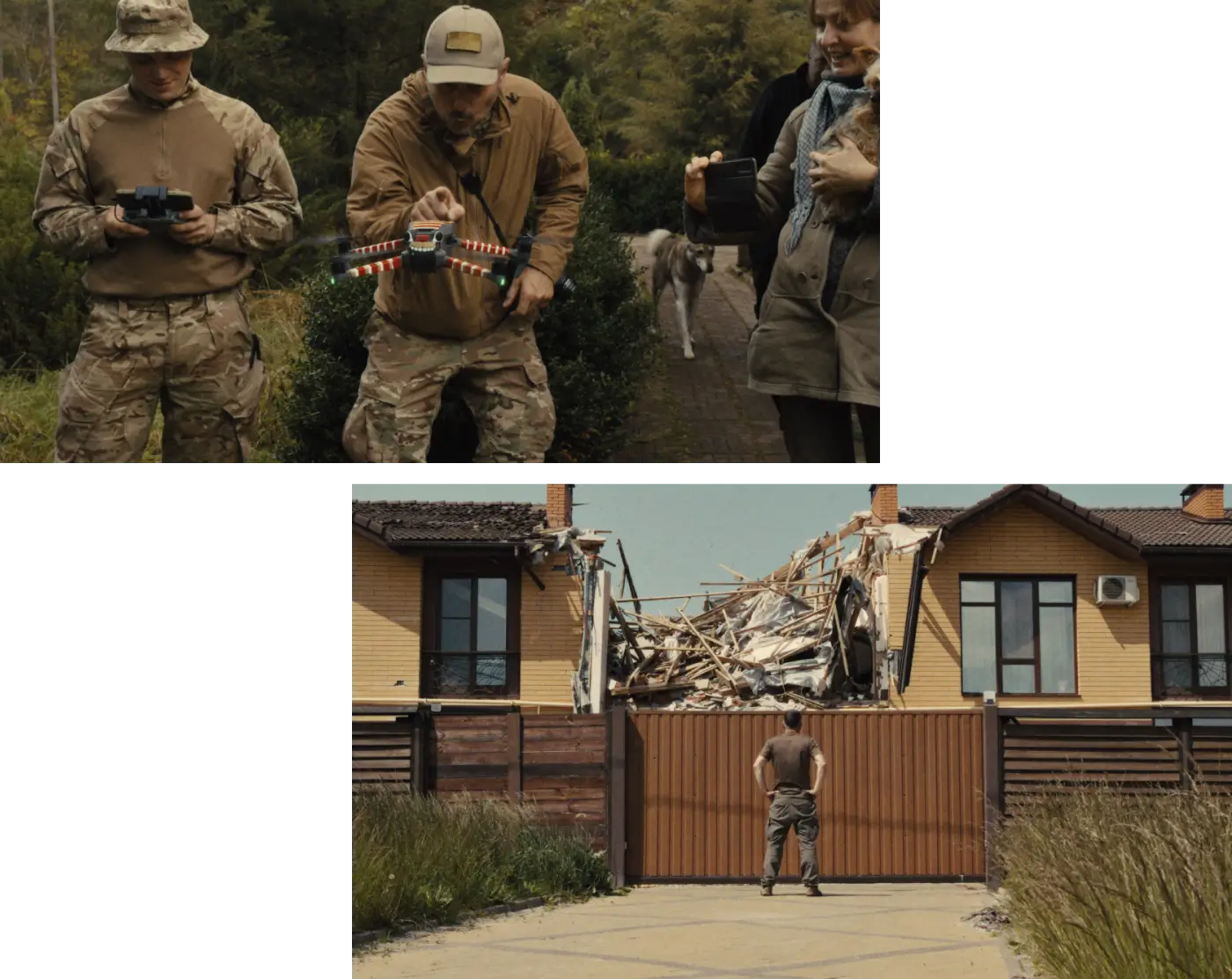 Андрій Стефанов: Ми могли йти, наприклад, до зруйнованої школи, знімати, ходити, обирати кут, але потім деякі кадри не потрапляли до фільму. Слава міг присісти й наговорювати текст на камеру. Іноді шматки аудіо змінювались і навіть не переписувались. Тобто більшість матеріалу виникала в процесі зйомок.