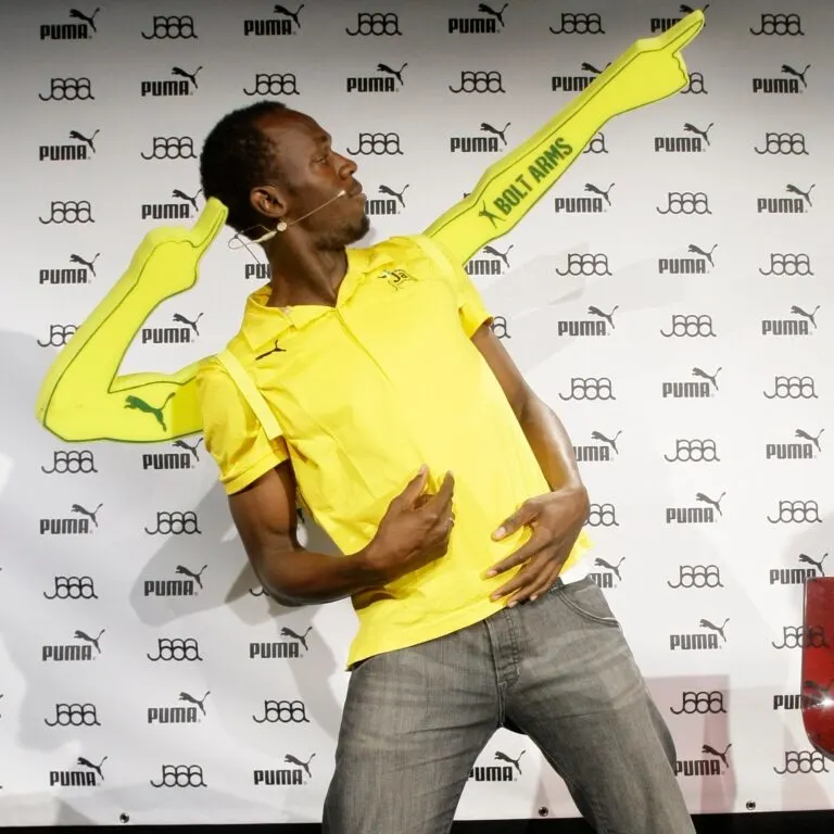 Усейн Болт рекламує Puma на пресконференції Чемпіонату світу з легкої атлетики 2023. Джерело: marketingweek.com