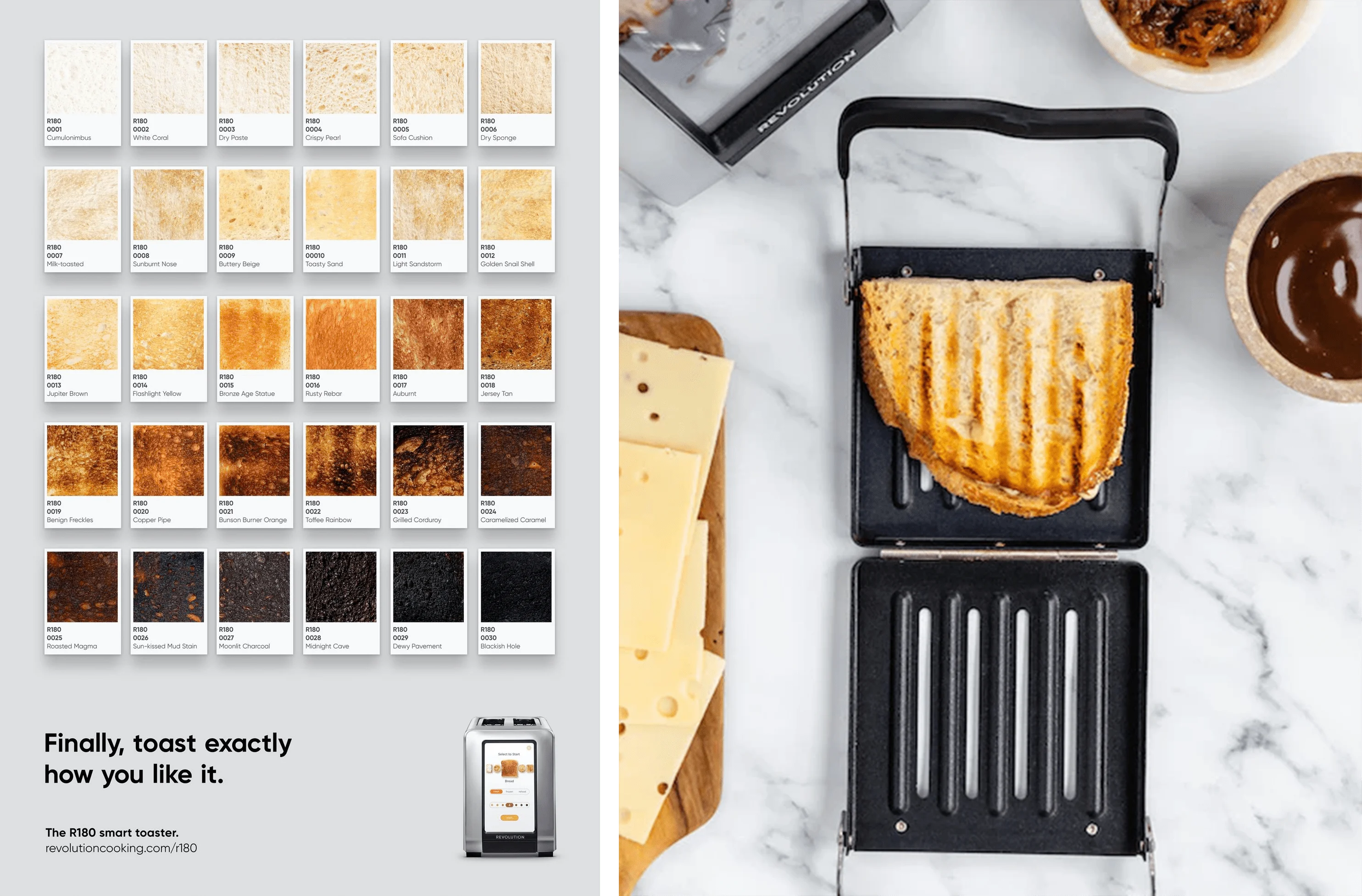 Кейс: Revolution Cooking працюють з одним товаром — тостерами. І будують кампейни відповідно до цього. Для кампанії 2023 року бренд зафіксував 30 різних відтінків обсмаження тосту. Кампанія вийшла з гаслом «Готуй свій тост саме так, як тобі подобається». Бренд цілиться в одну точку і будує свої креативи навколо тостів та їхніх смаків, не розпорошуючись на інші продукти.