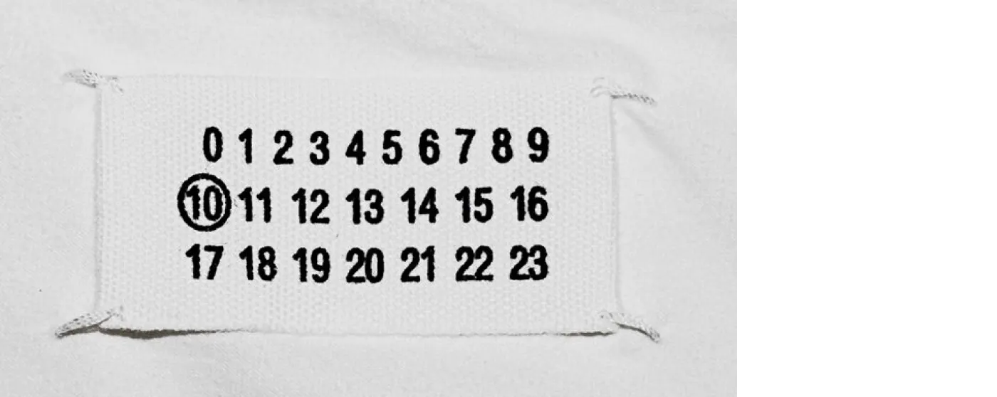 Маржела запевнив, що все зробить, але знову — не як усі, по-своєму. Зрештою на бирці з’явилися рандомні цифри з однією обведеною. Вони позначали категорію виробу: 1 — жіноча колекція, 8 — окуляри, 12 — ювелірка, 22 — взуття тощо.