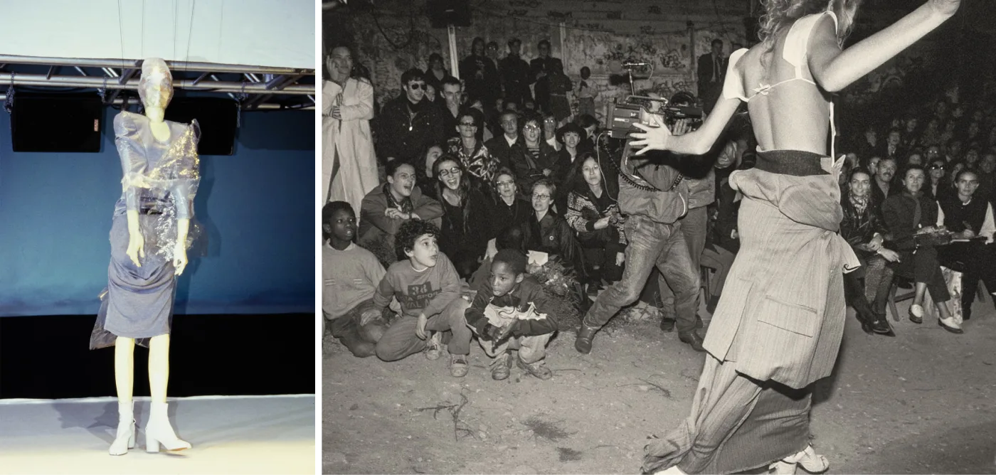 Ранні покази Maison Margiela більше скидалися на «мистецькі гепенінги, ніж театральні чи оперні постановки, притаманні паризькій моді 80‑х». Серед локацій: цвинтар, тунель під мостом, дитячий майданчик, закинута станція метро. Моделей часто ловили просто на вулиці та випускали їх йти подіумом наосліп — з маскою або тканиною на обличчі. Це за умови, що моделі взагалі були. Колекцію «весна/літо 1998» представили прямо на вішаках, а «осінь/зиму» того ж року — на маріонетках.