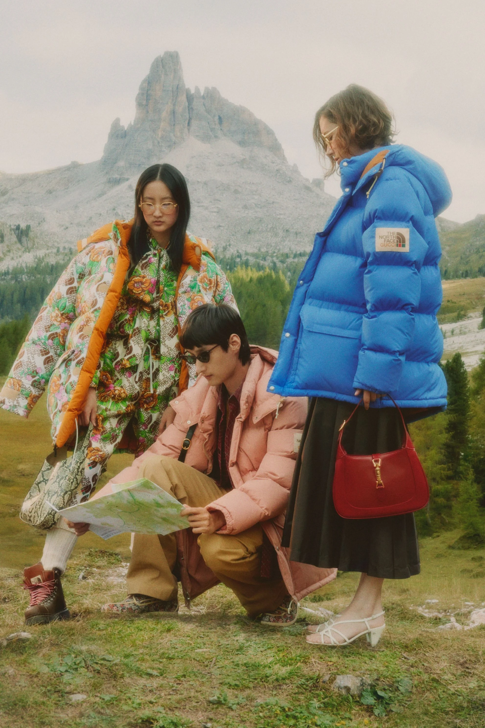 - The North Face x Gucci — це архіви 1970-х у поєднанні з еклектикою Алессандро Мікеле: верхній одяг, взуття, намети й спальники з екологічного регенерованого нейлону.