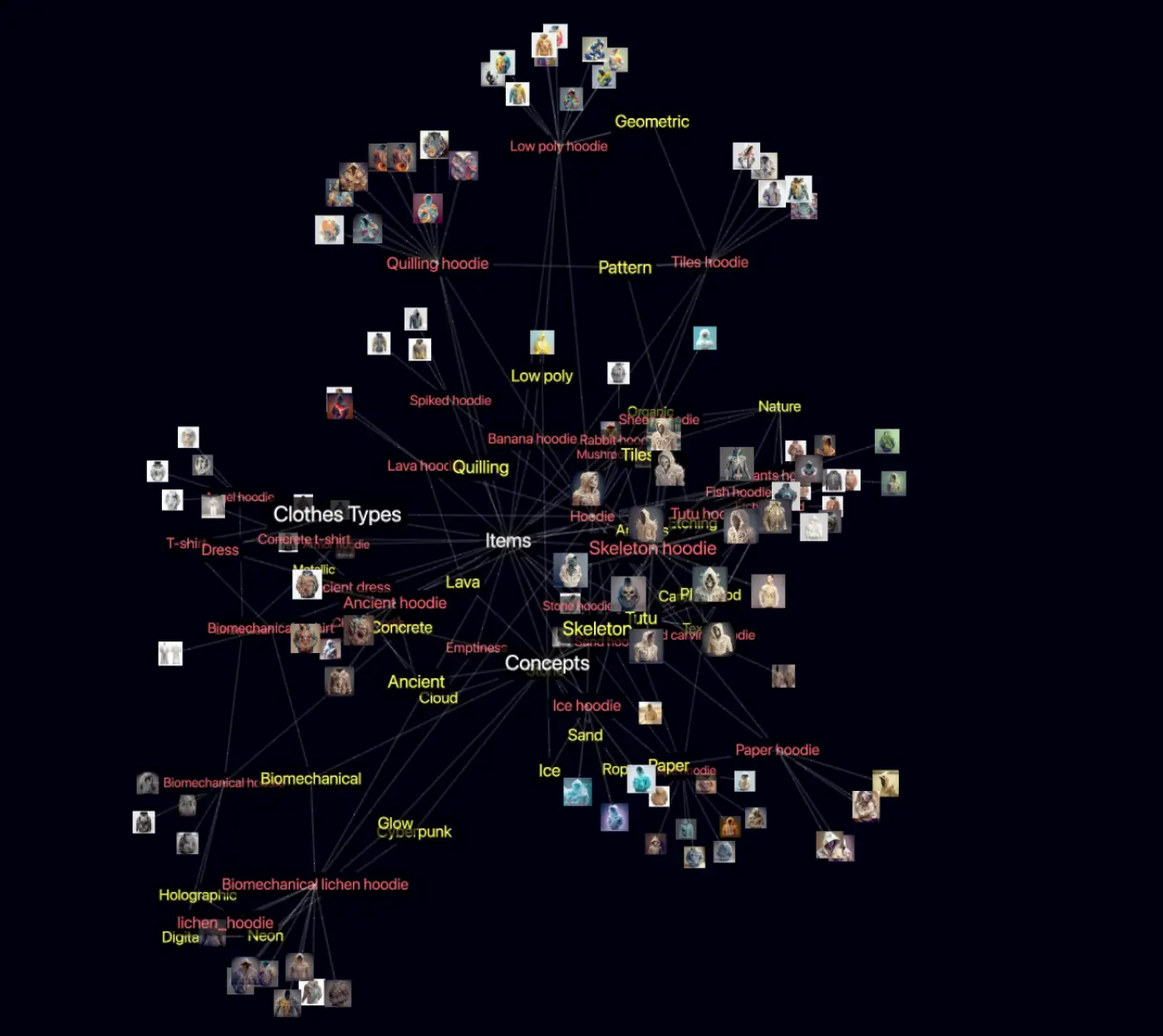 Задача була створити зін під час навчання на курсі. Я довго шукав, що можу переосмислити, і згадав, як починав досліджувати дизайн одягу через ШІ. У мене залишилась база: класифікація, теги на зображеннях. Колись це робилося для концепту інтернет-магазину, де користувач знаходить те, що його зачепило.