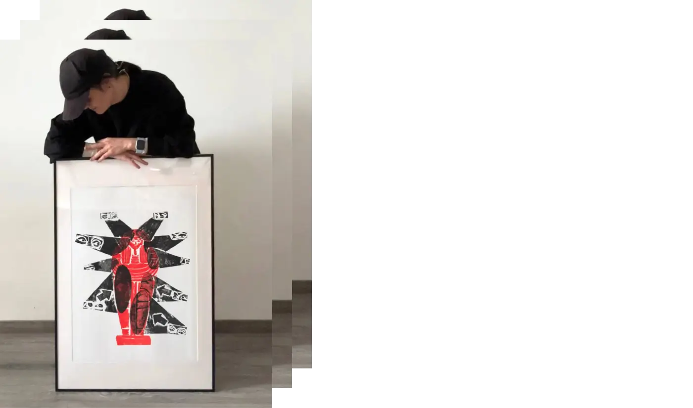 Працюю з темами, зосередженими на рефлексії та прийнятті себе. Моя основна техніка — картонографія: створюю гравюри з переробленого картону, де неідеальність відбитків є важливою частиною та символізує прийняття недосконалості. Зараз працюю над колекціями про внутрішній світ людини та про красу Києва.
