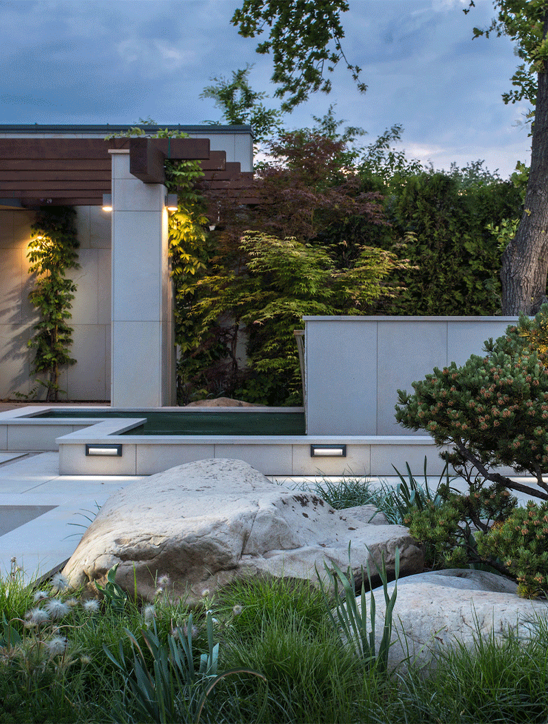 - Hard landscaping: робота з рельєфом території, доріжки, тротуари, покриття, майданчики та підпірні стінки, сходи, пандуси, бордюри, альтанки, перголи, навіси, МАФи, освітлення, системи зрошення та дренажу, ставки, фонтани, водні об’єкти