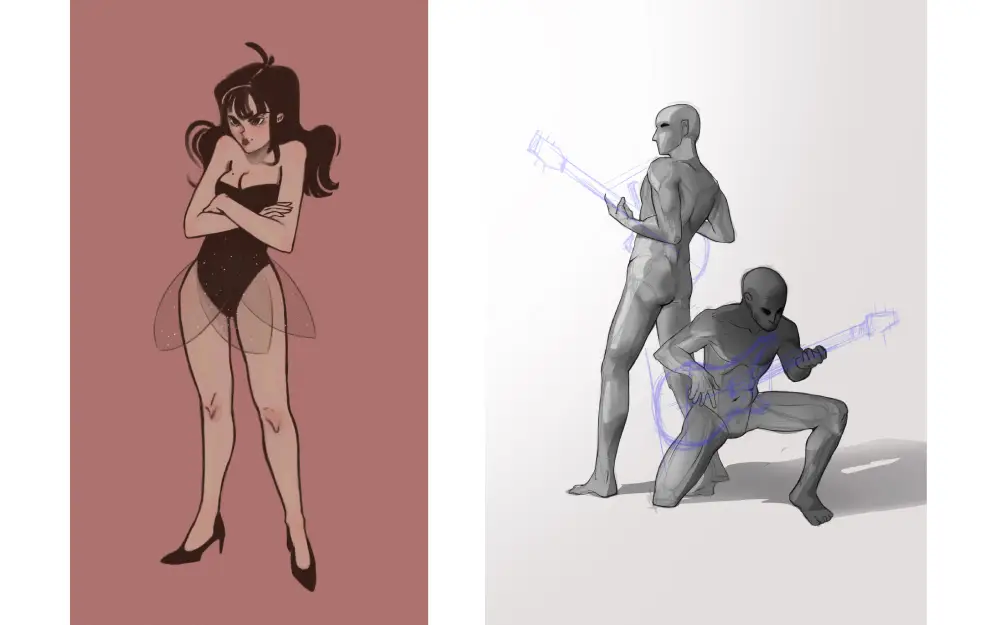 Скіли Вмієш малювати кожну частину тіла. Використовуєш знання правил анатомії, щоби порушувати їх у створенні нетипових персонажів. Розумієш анатомію тварин та розробляєш персонажів-гібридів (напівлюдей).
