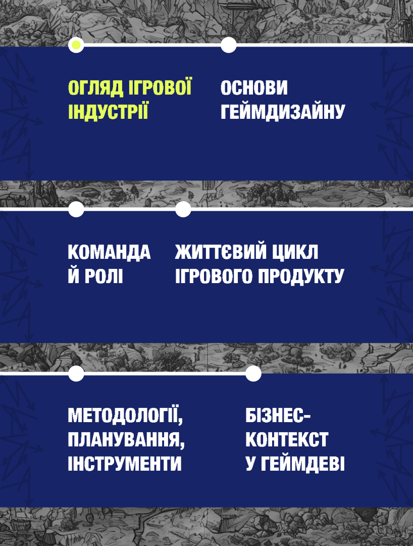 - детальний розбір: геймдизайн, левел-дизайн, UI/UX, інженерія, QA, продюсинг